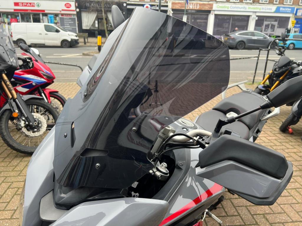 Accessories fitted include heated grips and centre stand